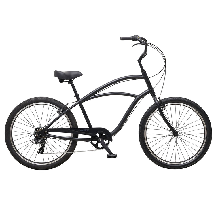 Built with an aluminum frame for the perfect blend of durability and lightness, this cruiser invites you to experience the essence of summer all year long. Whether you prefer a leisurely single-speed journey or crave the versatility of a 7-speed option, the Tuesday August Series delivers a ride that captures the joy of cruising.